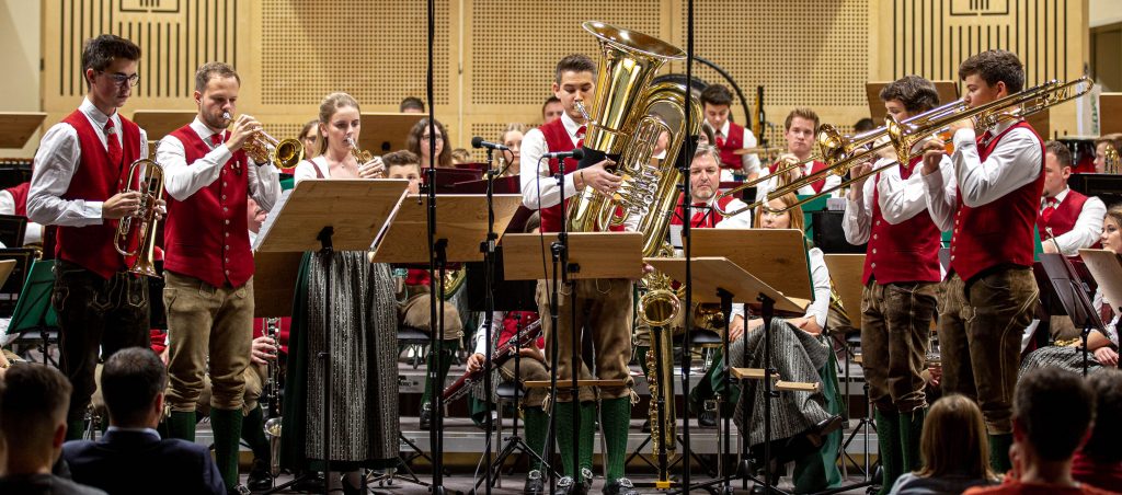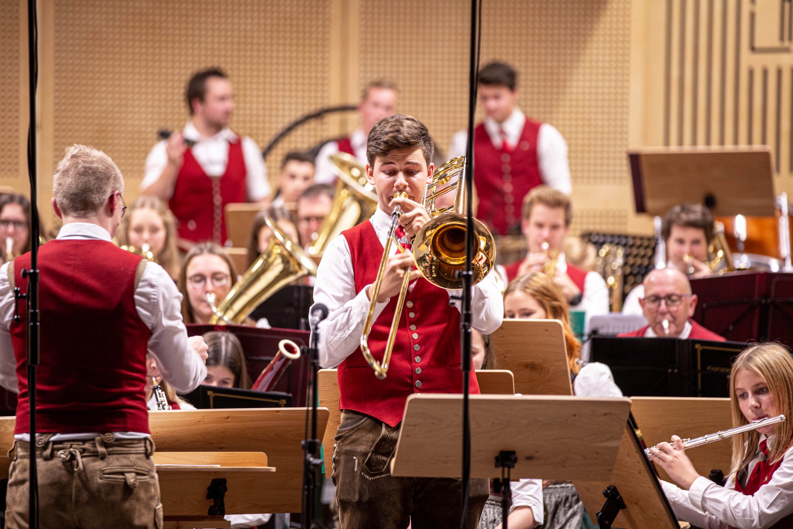 Bis in die letzten Saalreihen und hinauf auf die Tribüne füllte das Publikum die Angerer Sport- und Kulturhalle mit Zuhörern. 65 Musikerinnen und Musiker spielten Stücke zum Thema „I bin va Österreich“ – unter ihnen auch 13 neue Vereinsmitglieder, die im Rahmen ihres ersten Konzertes mit dem MV Anger den Jungmusikerbrief überreicht bekamen. Bezirksobmann Hannes Urstöger zog mit seiner Moderation den roten Faden durch das Programm.